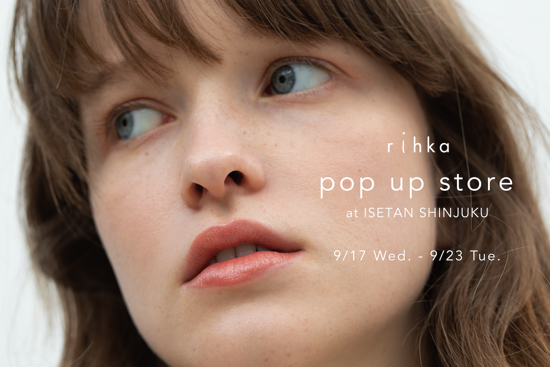いつもrihkaをご利用いただきありがとうございます。 この度、2024年9月19日(木)から9月25日(水)まで、東京都のニュウマン新宿にてポップアップストアをオープンします。 今回オープンするポップアップストアでは、rihkaの定番ラインナップを中心に、実際にお手に取ってご覧いただけます。また、リップバーム「chai tea」や新作のアパレルアイテムを公式オンラインストアより先行でご購入いただけるほか、ポップアップストアだけの限定アイテムもご用意しております。 なお、9月21日(土)〜23日(月)は、ディレクター松田未来の来店イベントを開催予定です。お時間は未定となっておりますので、予めご了承ください。 皆様のご来店をお待ちしております。 director’s message 秋の質感、秋の色、秋のムードが恋しくなるこのタイミングに、これまでにない贅沢な広々した空間でrihkaの新作を含め、沢山のアイテムをご覧頂く機会を設けることになりました。 気持ちが高まるコスメやアパレルをいち早くご覧頂けます。季節の変わり目に、新しい風を自分で吹かせて、わくわくした気持ちで毎日を過ごせると幸せですよね。 明日の自分が楽しみになるような、そんなお手伝いができたら私たちはとても嬉しく思います。 皆様にお会いできることを楽しみにしております! Mirai.M rihka pop up store ・開催期間:2024年9月19日(木)〜9月25日(水)・営業時間:月~日 / 11:00~20:30 祝日 / 11:00~20:00・会場:ニュウマン新宿 1階 NEWoMan Square(イベントスペース)・住所:〒160-0022 東京都新宿区新宿4丁目1−6 先行販売アイテムrihka lip balm「chai tea」/ 3.5g / ¥3,630(税込) “表情まで潤すリップバーム”唇をケアしながら、シアーカラーで表情を明るくする3種*の植物由来オイル配合の色つきリップバーム。 *カニナバラ果実油、ツバキ種子油、ヒマワリ種子油(全て皮膚コンディショニング成分) POINT1:高い保湿力でもっちりと潤った唇に自然な艶感を引き出す3種*の植物由来オイルを配合。 *カニナバラ果実油 ・ツバキ種子油 ・ヒマワリ種子油 (全て皮膚コンディショニング成分) POINT2:軽やかな塗り心地のシアーカラー発色をコントロールできる日常使いしやすい色展開。 chai tea チャイティー(RLB004) スパイシーなシナモンの香りが漂うチャイティーをイメージしたカラー。ほんのりブラウンを忍ばせた、自然に血色感をアップしてくれるテラコッタブラウン。 short sleeve mohair knit / one size / ¥25,300(税込) 南アフリカ原産の上質な極細モヘヤにシルクを合わせた高級素材「スーパーキッドモヘヤ」にウール100%をブレンドした、ウォーム感ととろけるような風合いが特徴のショートスリーブモヘヤニット。着こなし次第でロングシーズン楽しめる、ボリューム感のある肘丈スリーブは、別売りのロンググローブと合わせやすい丈感にこだわりました。前後どちらでも着ていただける2wayデザインです。 coussinet クシネ(RAP042) ブランドディレクター松田の愛猫・マドレーヌの肉球カラー「coussinet」をイメージした、淡いピンク。 tan タン(RAP043) ネイルポリッシュ「tan」からインスパイアされた、肌をヘルシーに見せてくれるくすみベージュ。 mohair knit long glove / one size / ¥13,200(税込) 南アフリカ原産の上質な極細モヘヤにシルクを合わせた高級素材「スーパーキッドモヘヤ」にウール100% をブレンドした、ウォーム感ととろけるような風合いが特徴のモヘヤニットロンググローブ。腕までやわらかく包み込んでくれるロング丈で、別売りのshort sleeve mohair knitと合わせていただきやすい絶妙な丈感です。ネイルカラーとの組み合わせを楽しんでいただけるように、指を出せるデザインになっています。 coussinet クシネ(RAP042) ブランドディレクター松田の愛猫・マドレーヌの肉球カラー「coussinet」をイメージした、淡いピンク。 tan タン(RAP043) ネイルポリッシュ「tan」からインスパイアされた、肌をヘルシーに見せてくれるくすみベージュ。 pop up store限定アイテム ネイルポリッシュの「chai tea」からインスパイアされた、ポップアップストア限定のライトブラウンカラーのアイテムが3種類登場します。 petite bag「chai tea」 / one size / ¥5,280(税込) コスメポーチとしてもショルダーバッグとしても使えるマルチポーチ。手触りの良い柔らかなドレープが特徴のベロア生地を使用。繊細で滑らかな光沢感を出すことで、高級感のある質感に仕上げました。アイシャドウパレット「rihka feelings palette」を持ち運びやすいように、内側にポケットも付いています。 petite petite bag「chai tea」 / one size / ¥5,280(税込) 大人気のpetite bagが小さめサイズになって登場!コスメポーチとしてもショルダーバッグとしても使えるマルチポーチ。アイシャドウパレット「rihka feelings palette」を持ち運びやすいように、内側にポケットも付いています。 petite tote bag「chai tea」 / one size / ¥6,380(税込) ベロア素材のコンパクトなトートバッグ。持ち手を少し長めにすることで、肩にかけやすくしました。内ポケット付きのiPadも入るA4サイズなので、持