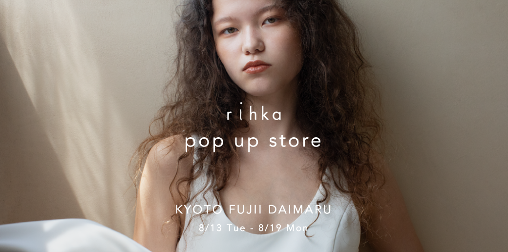 いつもrihkaをご利用いただきありがとうございます。 この度rihkaでは、2025年5月14日(水)から6月10日(火)まで京都府の京都高島屋S.C.にてポップアップストアをオープンします。 今回オープンするポップアップストアでは、rihkaの定番ラインナップを中心にご用意しております。これからのシーズンにぴったりな新作のアパレルアイテムも、オンラインストアより先行して販売します。また、週替わりの限定セットも登場予定です。詳細は、Instagram(@rihka_official)をご確認ください。 なお、5月17日(土)、18日(日)は、ディレクター松田未来の来店イベントを開催予定です。お時間は未定となっておりますので、予めご了承ください。皆様のご来店をお待ちしております。 rihka pop up store ・開催期間:2025年5月14日(水)〜6月10日(火)・営業時間:10:00〜20:00・会場: 京都髙島屋S.C.[T8]2階POP UP-2N・住所:〒 600-8002 京都府京都市下京区 四条通寺町東入二丁目御旅町 35 先行販売アイテム:fine jersey T shirt / ¥8,800(税込) 毎年大人気のシアーTが、さらにアップデートして今年も登場!こなれ感を演出するゆったりとしたシルエットに、今年はさらに透け感と柔らかさを加えたエアリーな素材を採用。肌がほんのり透ける軽やかな質感が、春夏のスタイリングに抜け感と涼しげな印象をプラスしてくれます。また、今季は昨年より着丈をやや短く調整し、ボトムインしやすいバランスに。もたつきを感じにくく、パンツにもスカートにも自然になじむシルエットです。本ポップアップストアでは、オンラインストア(5月17日(土)10:30発売)に先駆けて発売します。 coussinet(クシネ) / RAP066 ネイルポリッシュ「coussinet」からインスパイアされた、やさしい印象のシアーピンク。 freckle(フレックル) / RAP067 ネイルポリッシュ「freckle」からインスパイアされた、芯のあるしなやかな女性像を表現した軽やかなビターブラウン。 sage(セージ) / RAP068 ネイルポリッシュ「 sage」からインスパイアされた、心が浄化されるようなやさしさを感じるまろやかなイエローグリーン。 ポップアップ限定Weekly set ポップアップストアだけのお得なウィークリーセットをご用意しております。 5/14〜5/20 best seller nail polish setprice:¥5,640(税込、¥300OFF)・nail polish coussinet(NAB010)・nail polish dew(NAB041)・巾着付き(*なくなり次第終了) 5/21〜5/27 my lip setprice:¥7,510(税込、¥300OFF) ・お好きなリップスティック 1本・お好きなリップバーム 1本・巾着付き(*なくなり次第終了)*RLS003 blush、RLB002 coussinetは対象外となっております 5/28〜6/3 soft glow setprice:¥8,850(税込、¥500OFF) ・mascara freckle(RMC004)・loose powder fresh & glow coussinet(RAB001)・巾着付き(*なくなり次第終了) 6/4〜6/10 petite bag & feelings palette setprice:¥11,380(税込、¥500OFF) ・petite bag bonne nuit(RAP061)・feelings palette set(feelings palette本体+お好きなリフィル4色)