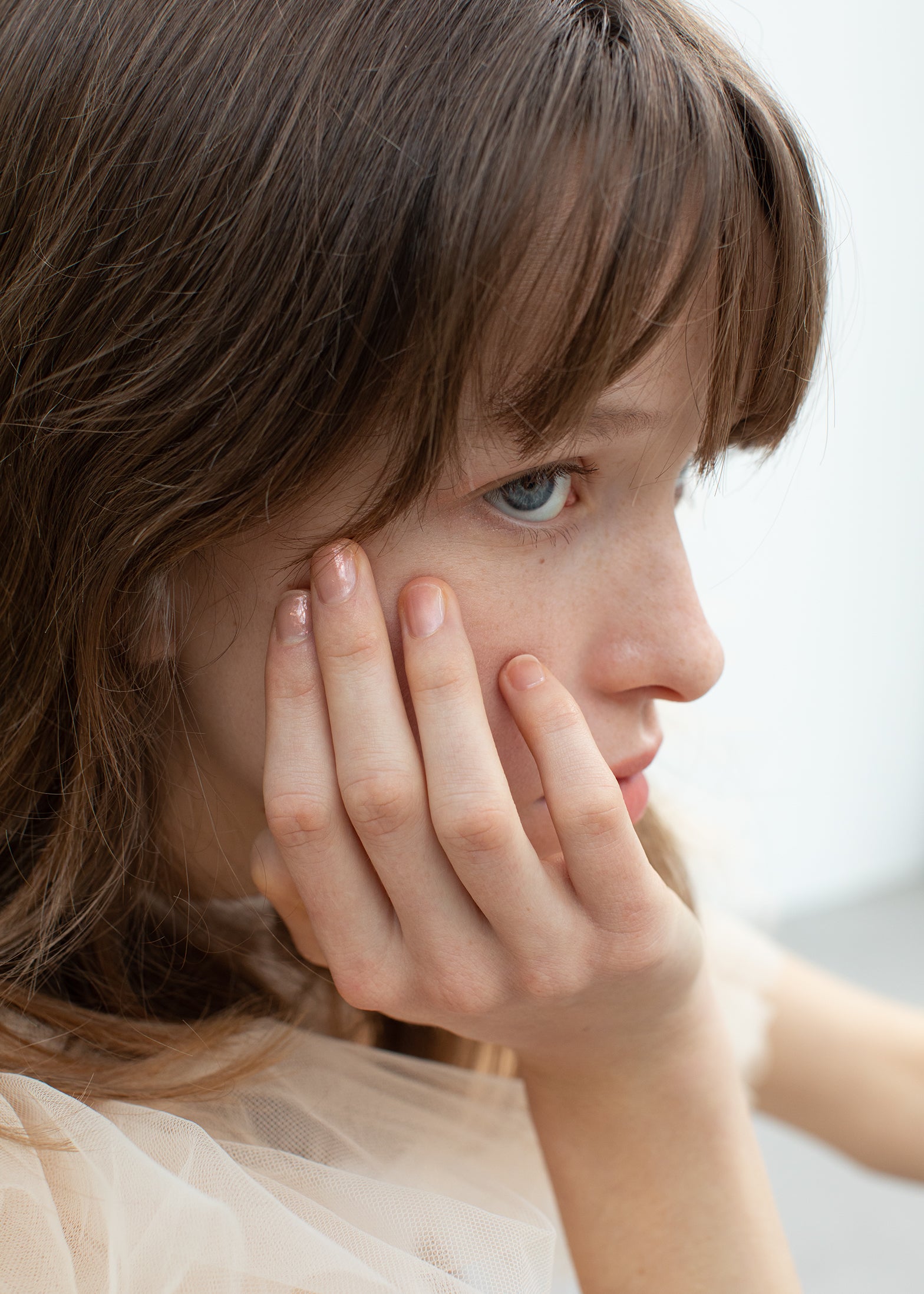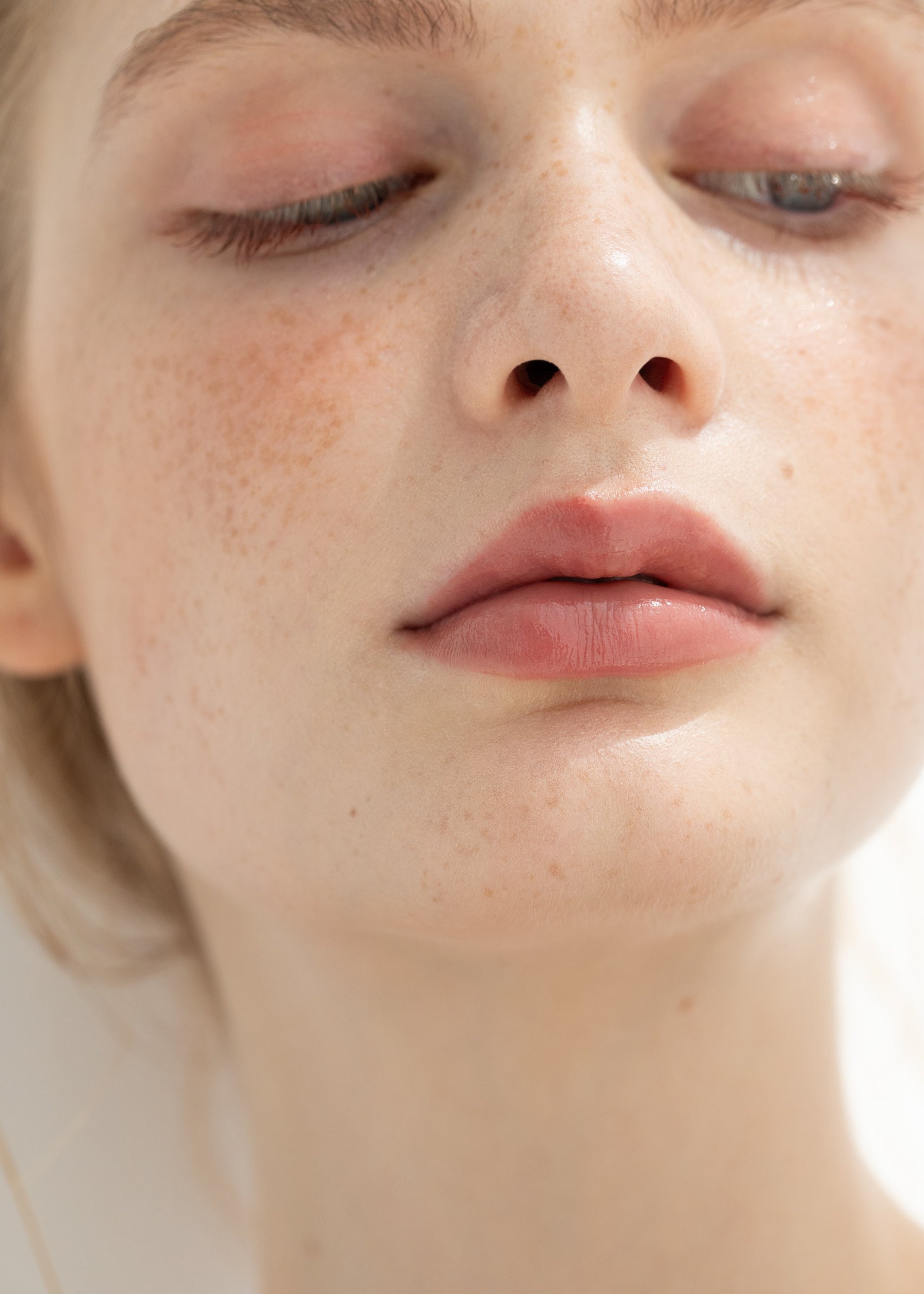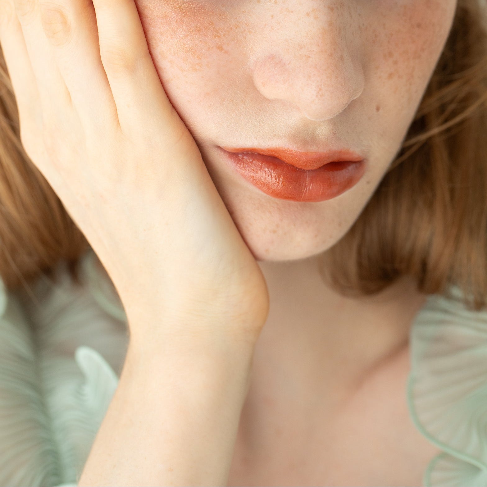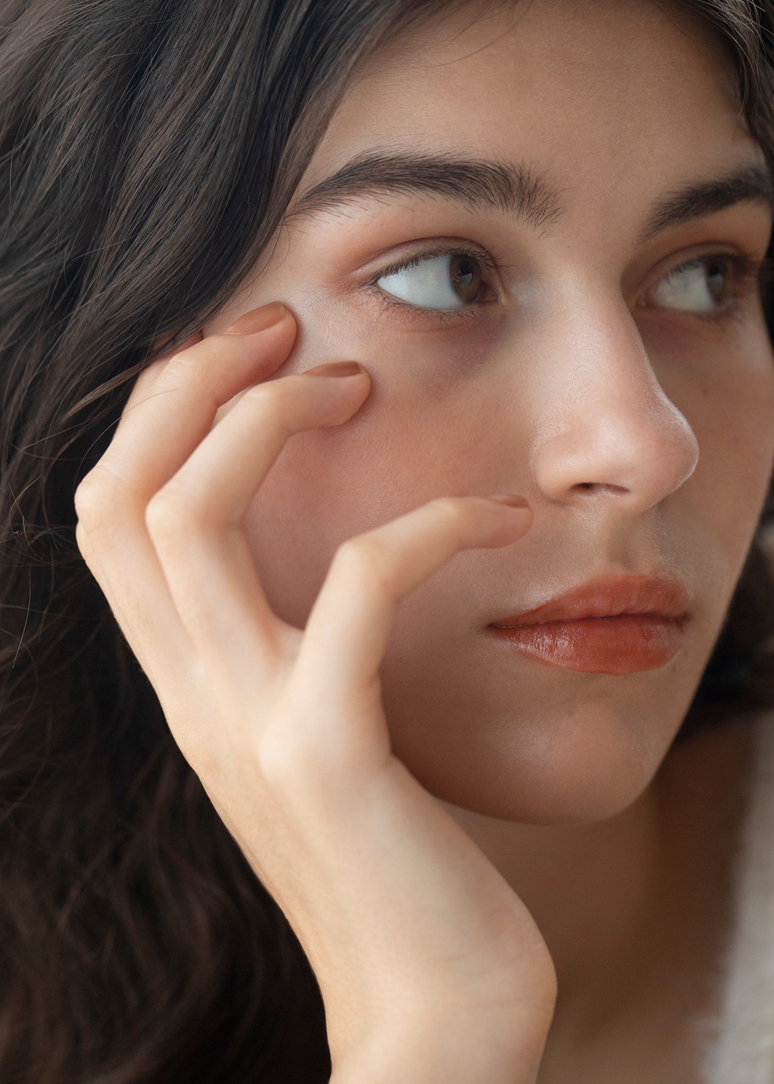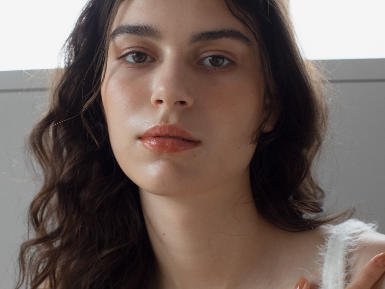 テラコッタブラウンのリップカラーに合わせた、シャープさとやさしさを両方感じる、とろけるようなブラウンメイク。