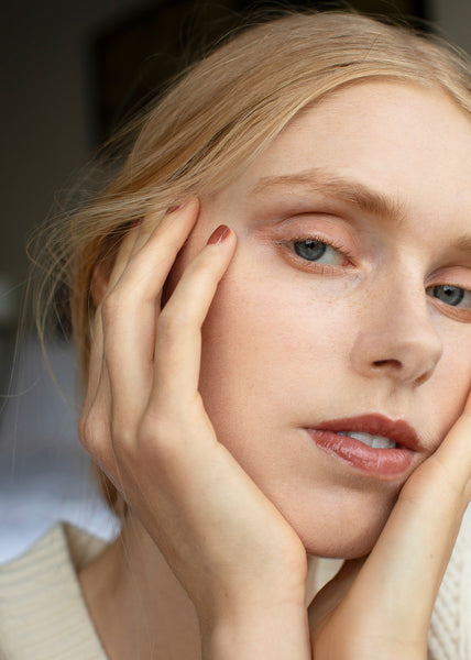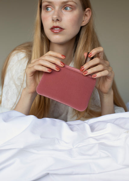 柔らかな色気を添えるモーヴ感のあるピンクブラウン。