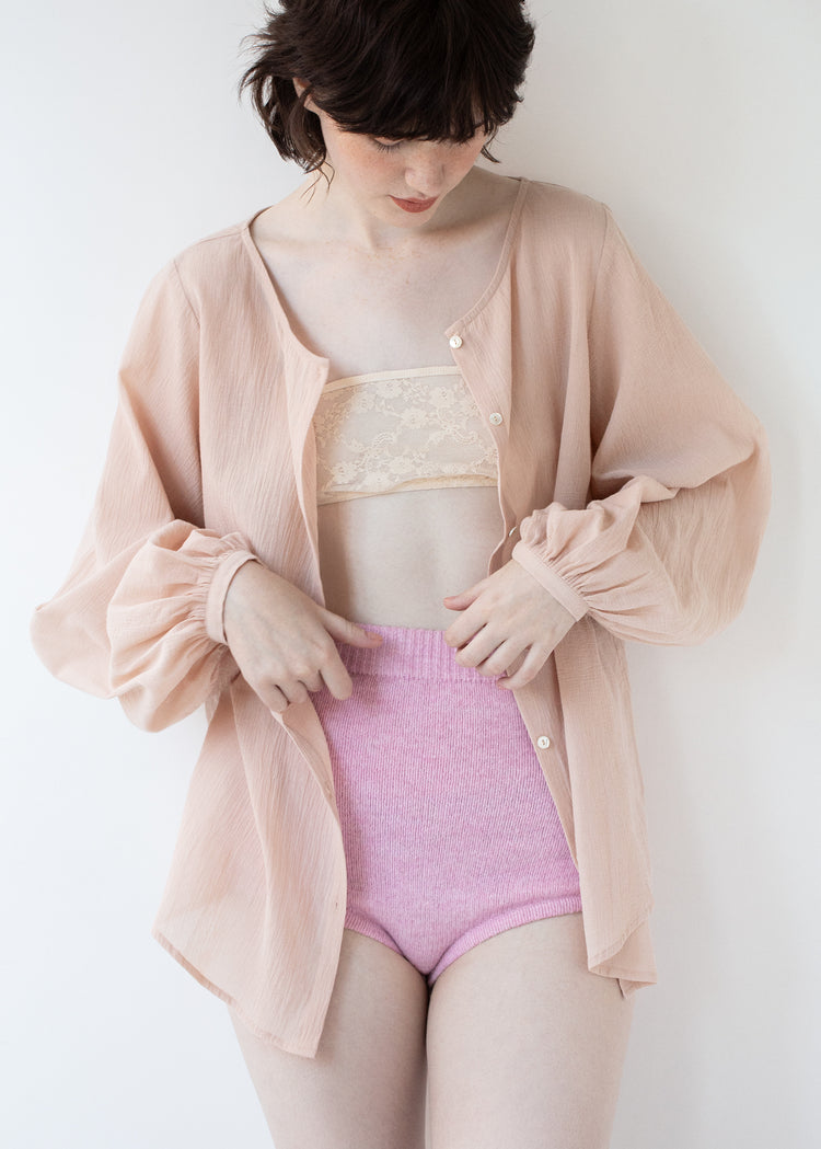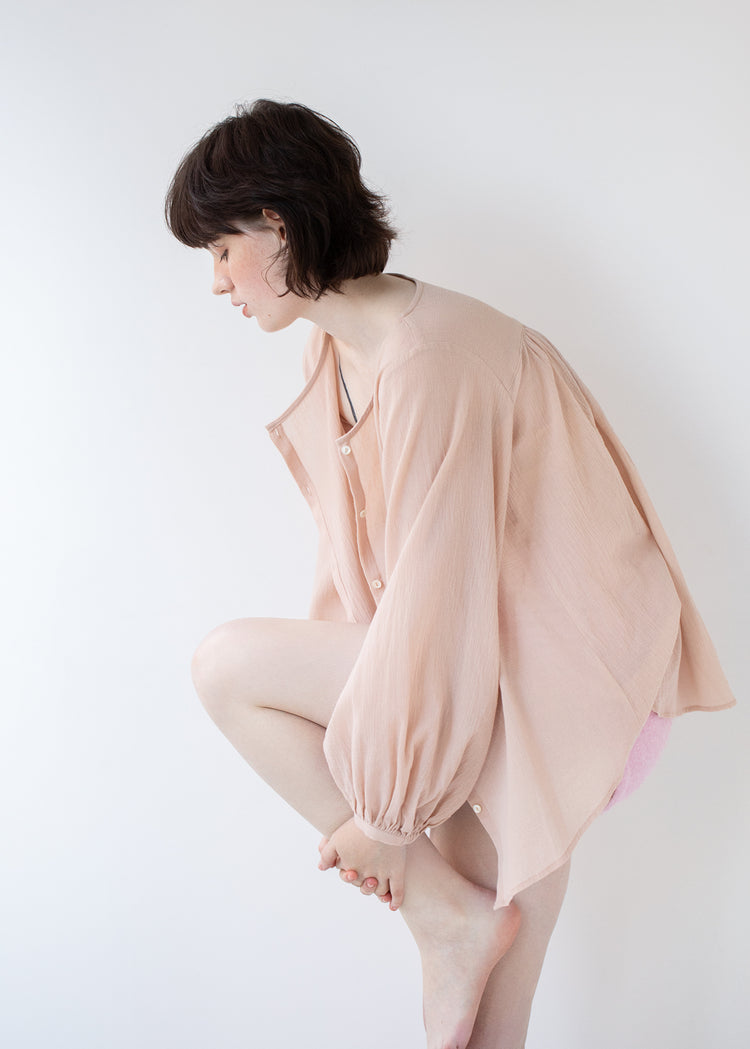 ふんわりと軽やかな着心地に仕上げたシアーブラウス。