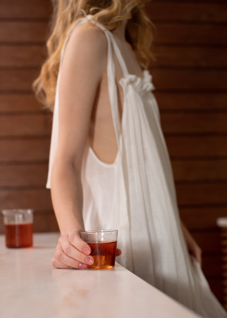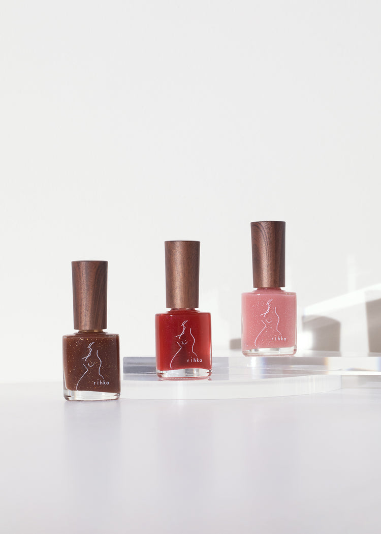 毎日のティータイムを大切にしている未来さんが、グラスの中ではじけるティーソーダや紅茶をネイルにしてくれました。私たちをリラックスさせたり、心地良くしてくれたりする紅茶の色を指先まで連れ出してくれたのです。 色はいつも、ふとした瞬間に私たちを助けてくれる。その色に強さや優しさ、今の自分をポジティブに後押ししてくれる小さな力が込められているのを知っているから。rihkaのネイルはそうやって私たちを光の中に連れ出してくれるのでしょうね。指先に紅茶を。