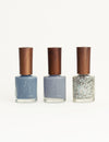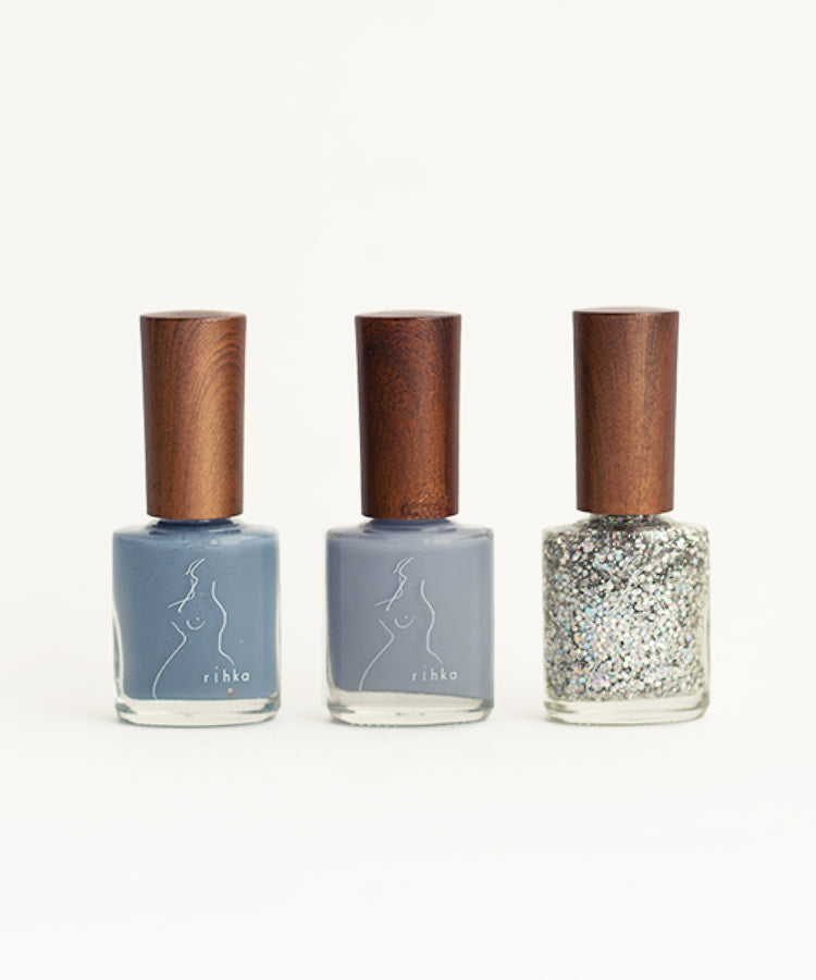 大人気のグリッターネイル「dew」と夏らしいブルーのネイルの組み合わせを楽しめる3点セット。