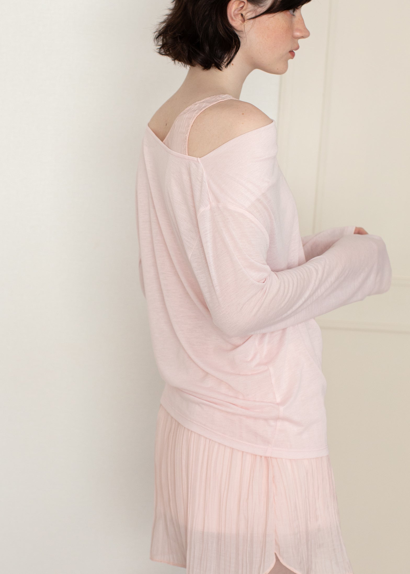 繊細な透け感とふんわりと柔らかな素材感が心地よいボートネックデザインのロンT。
