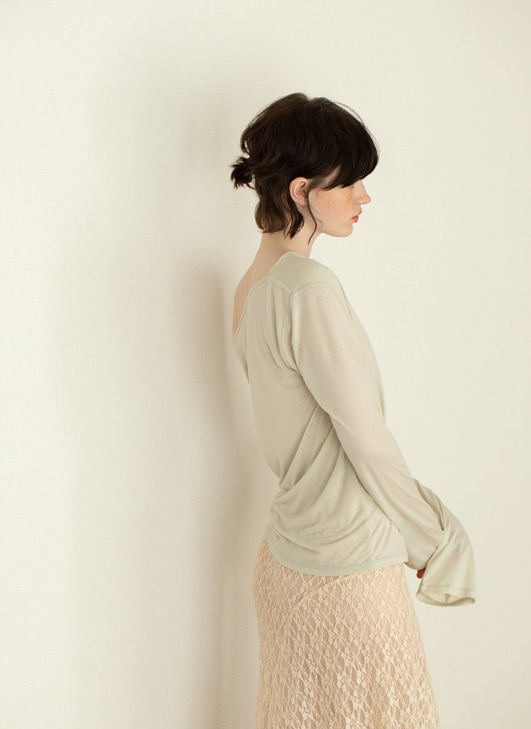繊細な透け感とふんわりと柔らかな素材感が心地よいボートネックデザインのロンT。
