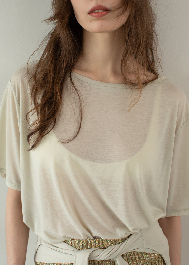 こなれ感を演出するゆったりとしたシルエットに、今年はさらに透け感と柔らかさを加えたエアリーな素材を採用。