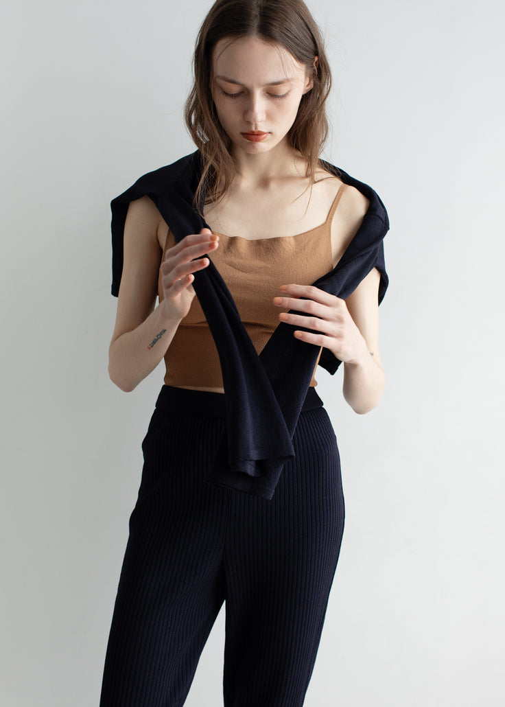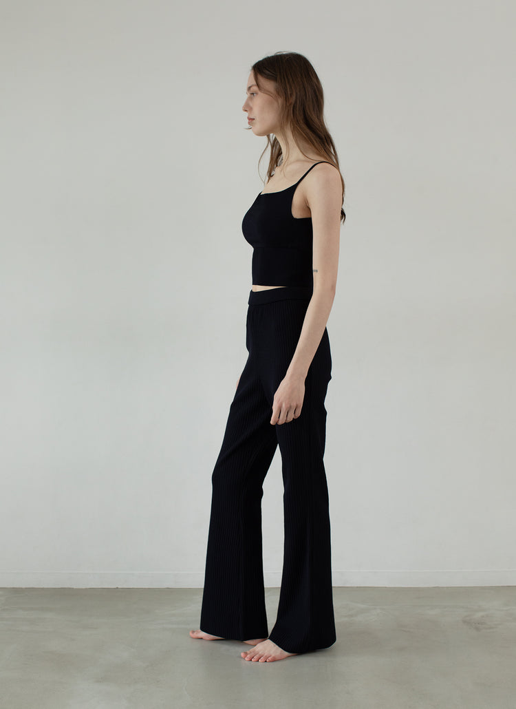 美しいシルエットと着心地を両立した、リブニットパンツ。